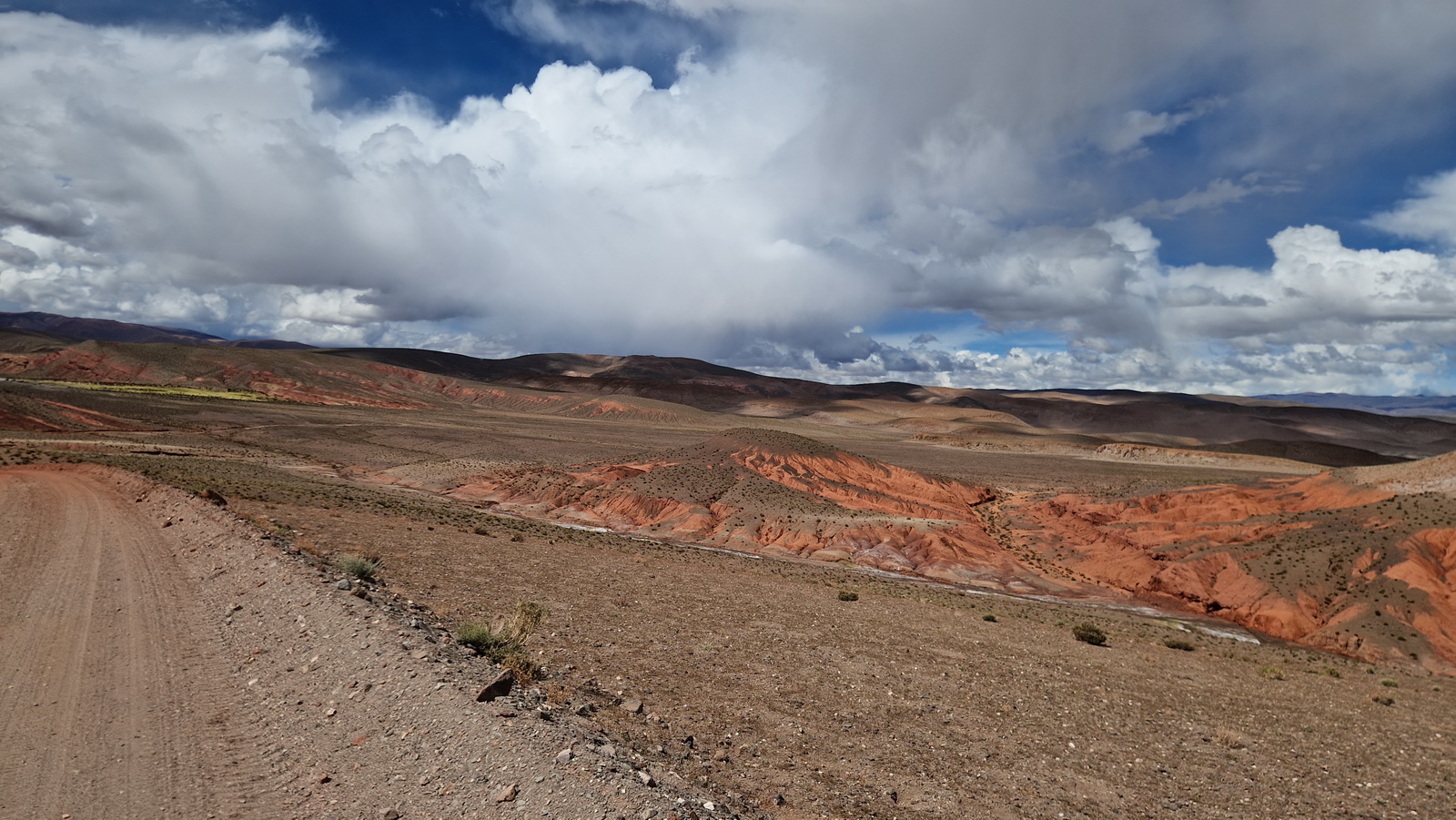 Za tyto dva dny jsme ujeli něco přes 550 km přes náhorní pláň plnou solných jezer a vystoupali nad 4.500 m.n.m. Vyrazili jsme z Antofagasta da la Sierra do městečka Abra Pampa. Cesta byla celá šotolinová, takže velice často s pocitem prázdných pneumatik. Tím chci říci, že povrch byl málokdy tvrdý. Většinou se kamínky střídaly s hrubým pískem, mělkým pak hlubokým, a když už to vypadalo, že si zvykáme, přišel jemný písek. Podklad se střídal každou chvíli a barva od tmavě hnědé přes červenou, žlutou až k bílé. Abych se mohl dostatečně kochat, bylo lepší v některých úsecích zastavit. Nebudu vám tu popisovat ty nádherná panoramata, což ostatně ani pořádně nejde, podělím se s vámi o fotografie, i když ten obrovský rozměr stejně nejde zachytit.Na této pláni se těží sůl a lithium, kterého má Argentina prý 9,8 mil. tun. Patří do takzvaného lithiového trojúhelníku, kde je společně s Bolívii a Chile. V Bolívii leží polovina známých zásob lithia. Tyto těžební práce bohužel sebou nesly časté setkání se s kamionem, to znamená prach a zase prach. Kamion projede a vy vůbec nevidíte cestu. Občas cesty nebyly moc široké, a tak je rozumné zastavit. Ještě, že před kamiony jede doprovodné vozidlo, které má na sobě číslo, kolik doprovází náklaďáků a vy se můžete připravit na to, co bude následovat. Druhý den jsme se už nepohybovali po trase, kde jezdí náklaďáky, tak to bylo s velice malým provozem, asi pět aut a něco malých motorek, o to to bylo příjemnější svezení bez prachu.
